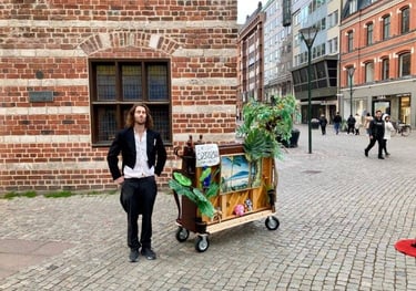 Fantasia is an interactive show that has been alive for more than a decade. The audience make suggestions and the on-stage artists interpret them live. It can come in various constellations, either with only piano and song (me solo) or with a professional dancer and an artist (painter) as well, interpreting the suggestions of the audience with both visuals and movement at the same time as music - making the whole experience even more immersive.